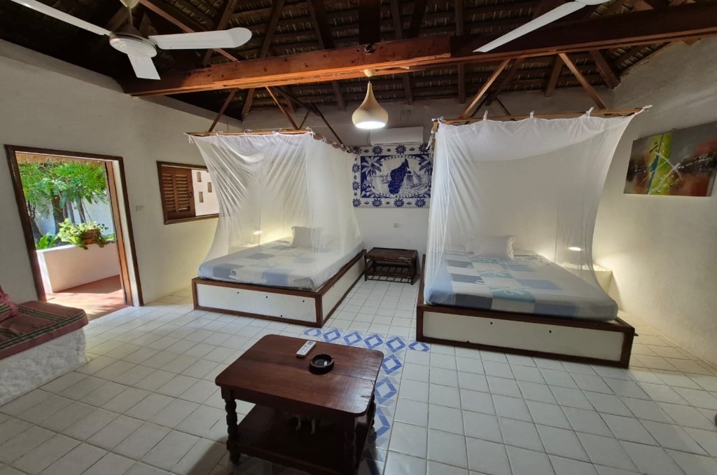 Spacious rooms with two double beds and large sitting area with a couch which converts into an extra bed for smaller children.